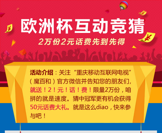 2、50元话费奖将在欧洲杯结束后赠送。