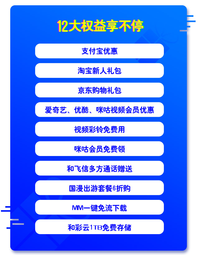 ⑧ 更多12大权益内容请登录“中国移动”APP查询了解。